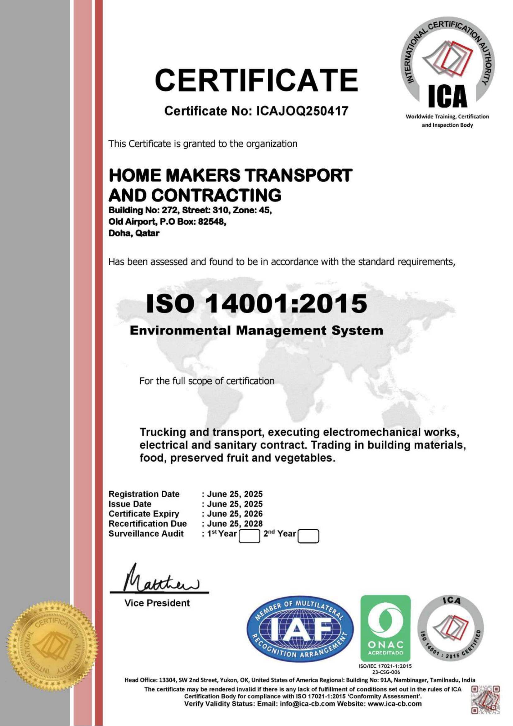 Homemakers Transport & Contracting W.L.L Office :17